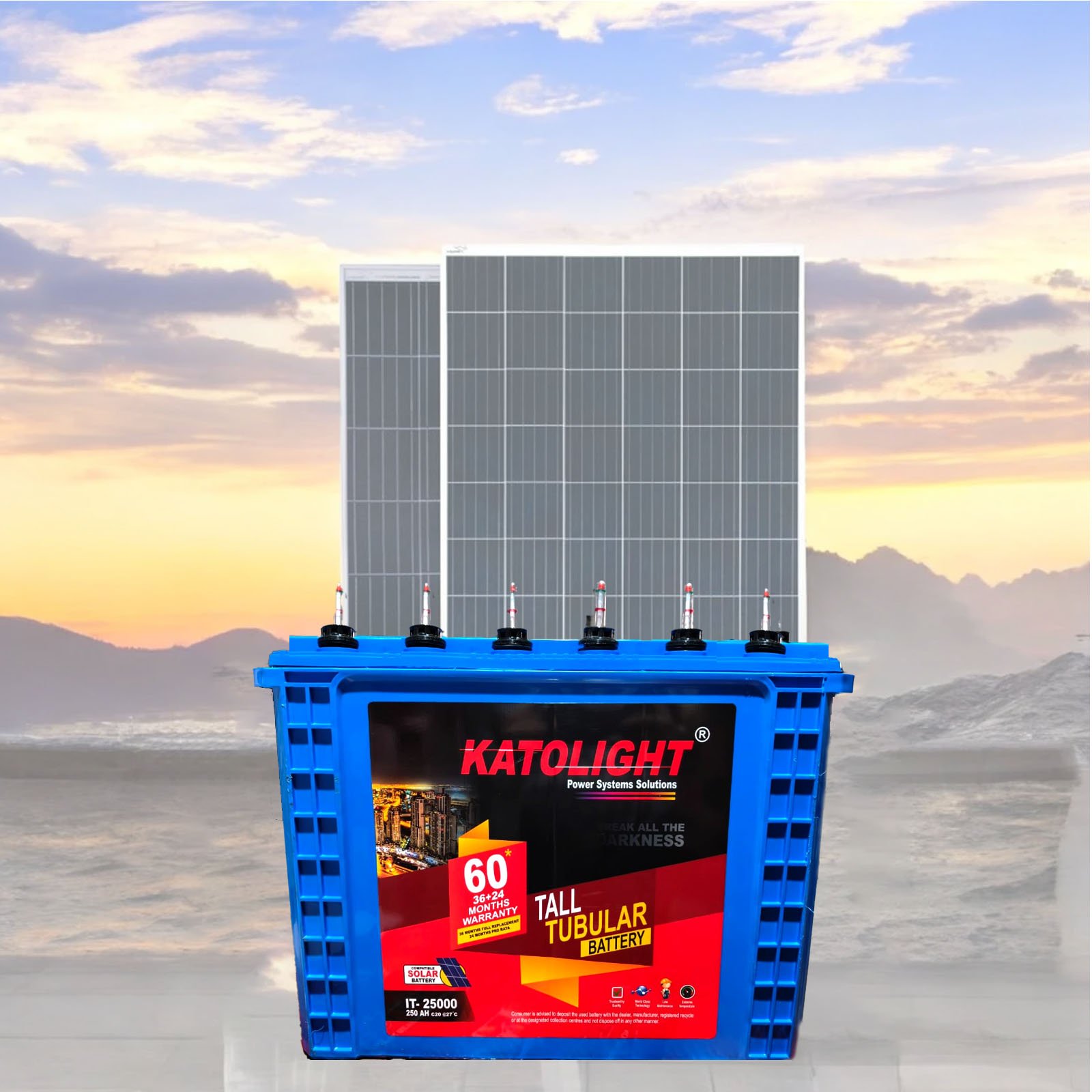 Katolight Tall Tubular Battery is a high-performance inverter and solar battery designed for long backup and reliable power. With a strong tubular plate design and 250Ah capacity, it ensures fast charging, durability, and consistent performance. Backed by a 60-month (36+24) warranty, it is an ideal choice for homes, shops, and solar power systems, offering low maintenance and dependable energy support.